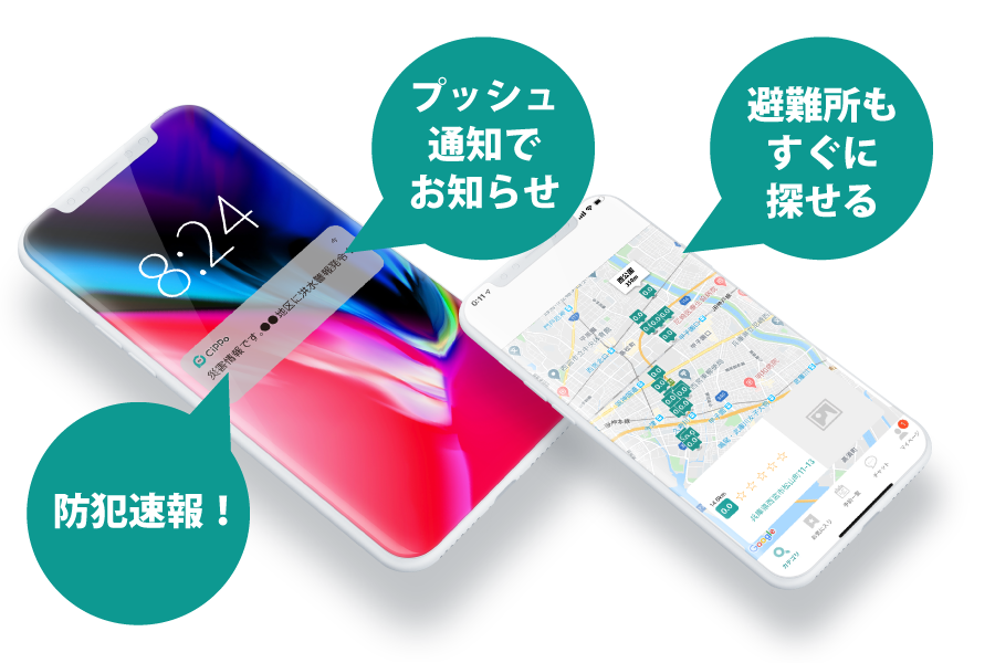 「避難所」も“今いる場所”から探して近い順に表示してくれるので安心!災害が起こる前に、地震・豪雨・津波などの情報をプッシュ通知でお知らせ!通知のON・OFFも設定可能。